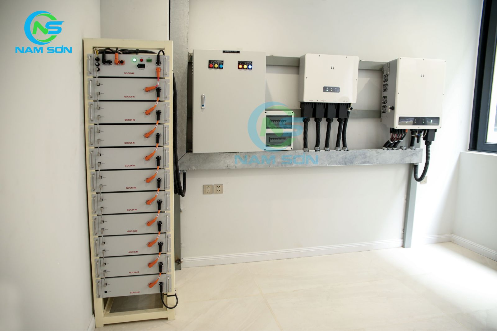 Cấu hình: 73 tấm Longi Hi-MO X10 (655Wp), 11 pin GoodWe cao cấp (5kWh), Biến tần Hybrid GOODWE 3 pha cao cấp
