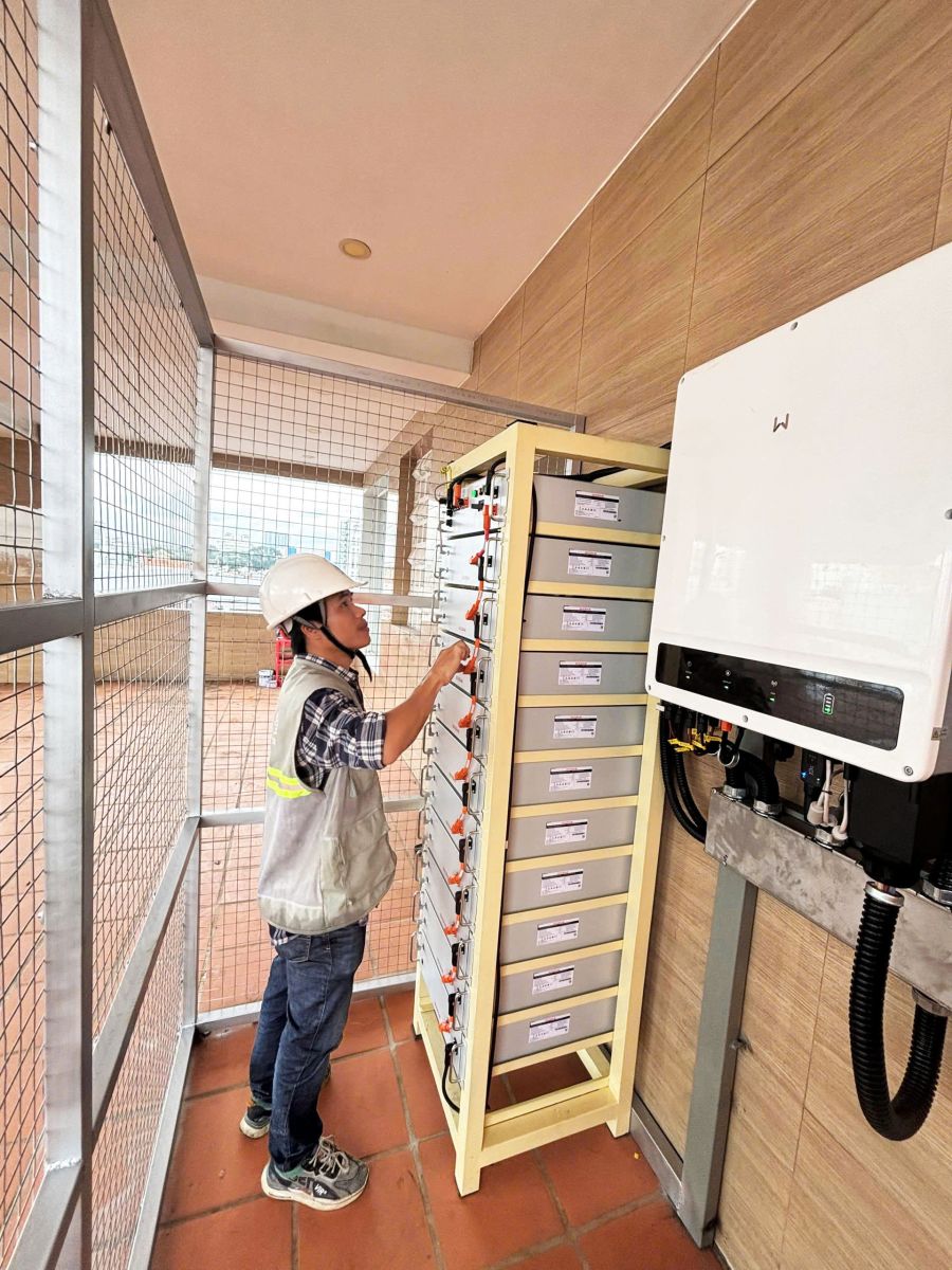 • 🔋 Hệ thống lưu trữ: Tháp pin trữ 51.2kWh, đảm bảo cung cấp điện ổn định cả ban đêm hoặc khi mất điện lưới.