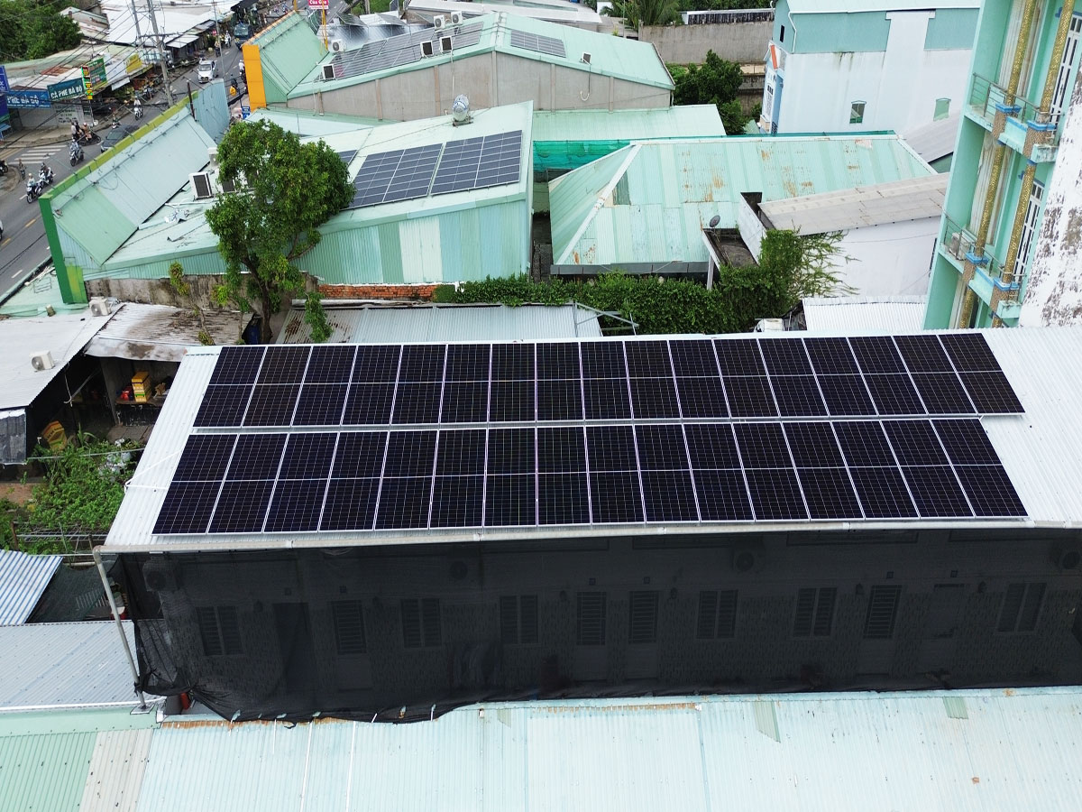 • Yêu cầu diện tích: Hệ thống cần diện tích lắp đặt Trên 60 m² trên mái tôn để lắp đặt 22 tấm pin.