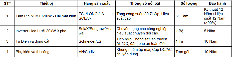 Đừng lo lắng nữa! Hệ thống điện mặt trời hoà lưới 30.7kWp 3 pha chính là "vũ khí bí mật" giúp bạn làm chủ chi phí, biến mái nhà xưởng thành nguồn điện sạch, tạo ra 3.200kWh điện miễn phí mỗi tháng!