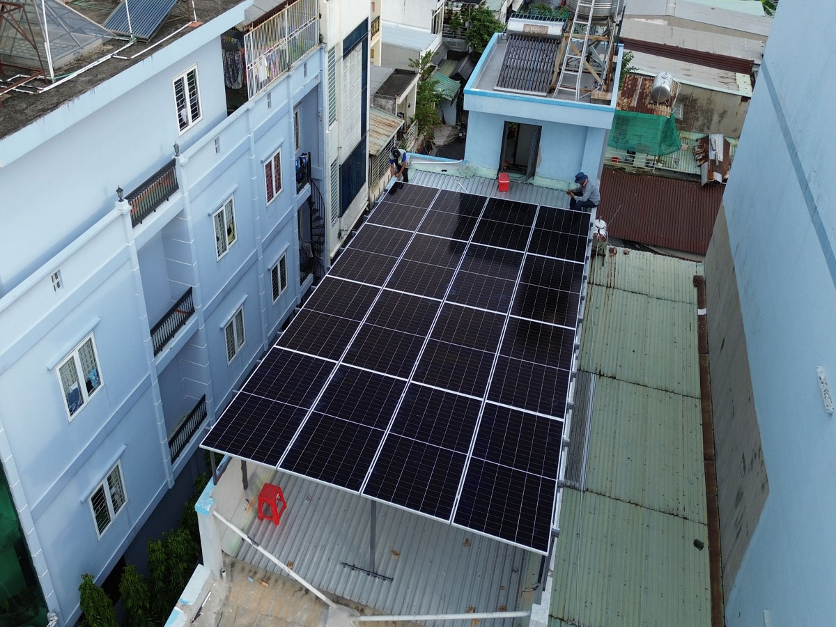 • Yêu cầu diện tích: Hệ thống cần diện tích lắp đặt trên 30 m² trên mái tôn để lắp đặt 14 tấm pin.
