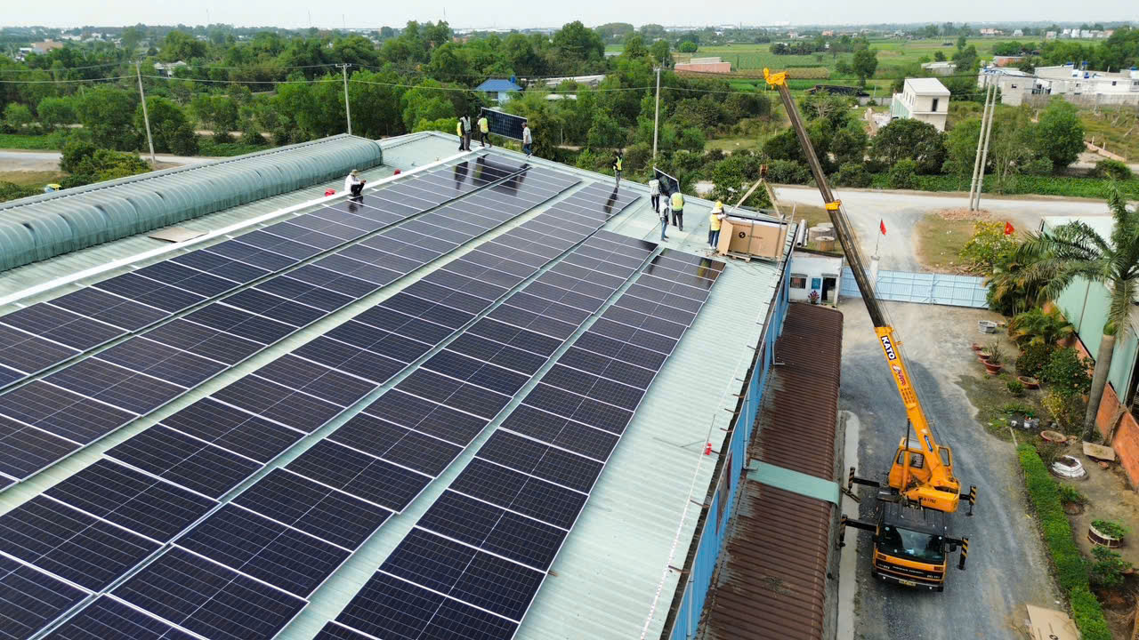 Hệ thống được triển khai theo mô hình điện mặt trời hoà lưới bám tải, phù hợp cho nhà xưởng, khu sản xuất, kho vận và công trình thương mại có nhu cầu tiêu thụ điện lớn vào ban ngày.